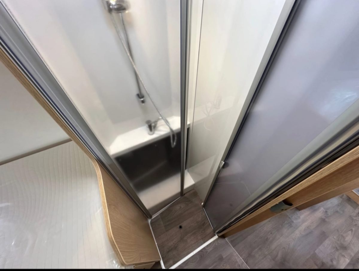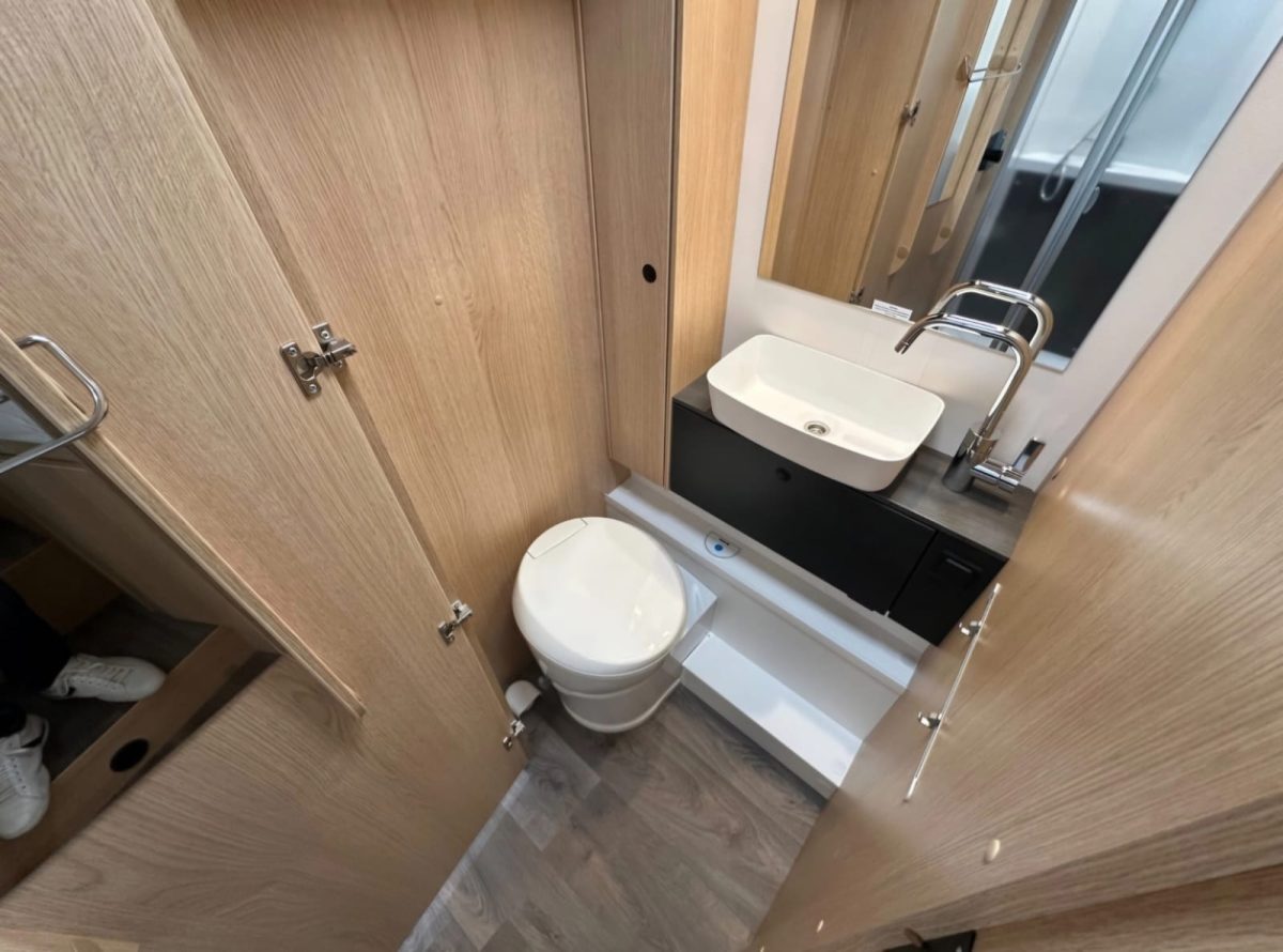 - duża łazienka: umywalka, chemiczne WC, kabina prysznicowa