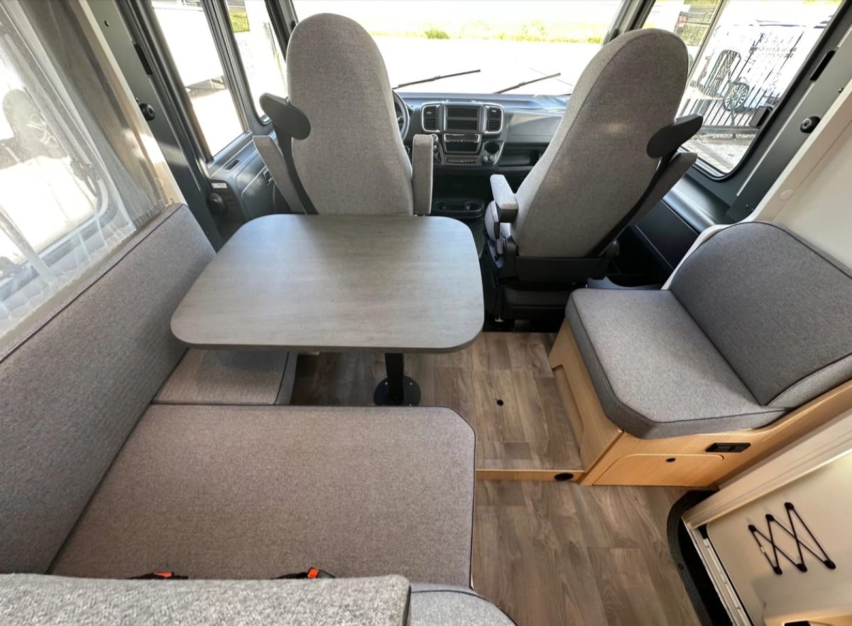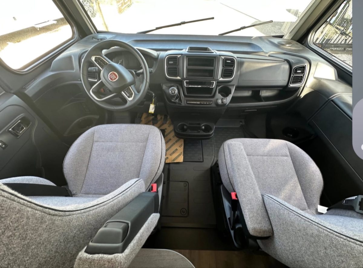 - obrotowe fotele w kabinie kierowcy (po obróceniu foteli istnieje możliwość siedzenie nawet dla 6 osób podczas postoju)